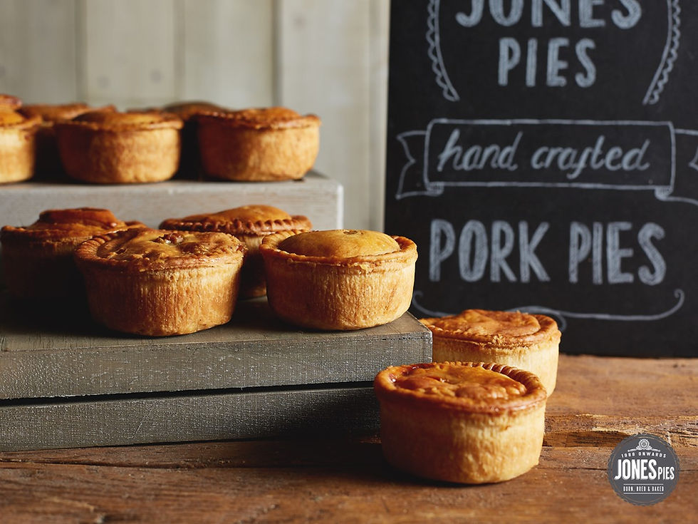 Jones Pies was started in the back of a Yorkshire Butchers Shop in 1988 and since then has gone on to be renowned for its fantastic range of pork pies, sausage rolls and pastries. True to the good old fashioned ways of making a great pie - Every pie is handcrafted using the best meat and the best of local ingredients.